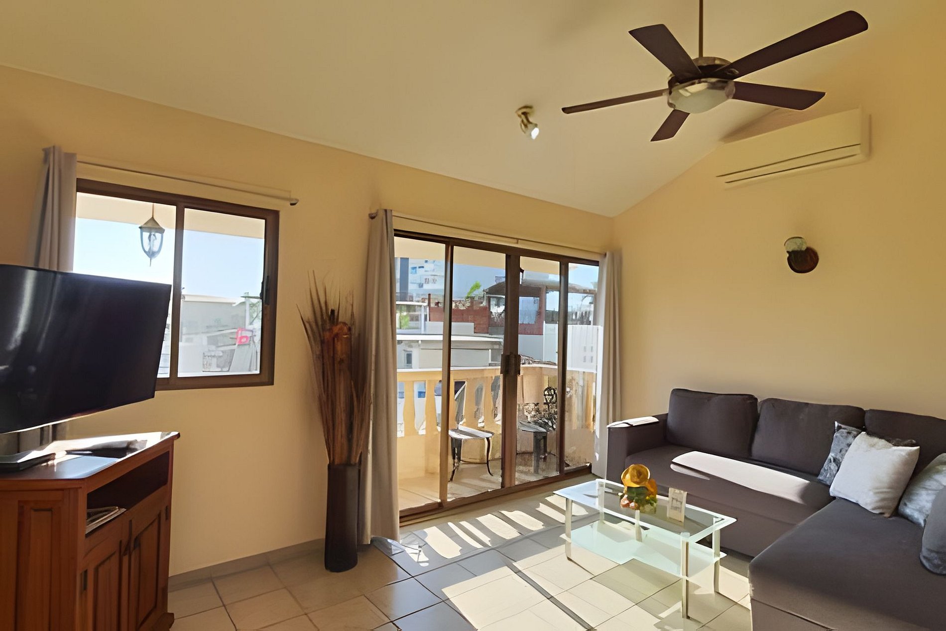 Este bonito apartamento está situado en la primera planta. La propiedad incluye tres unidades de aire acondicionado, lo que garantiza comodidad durante su estancia.