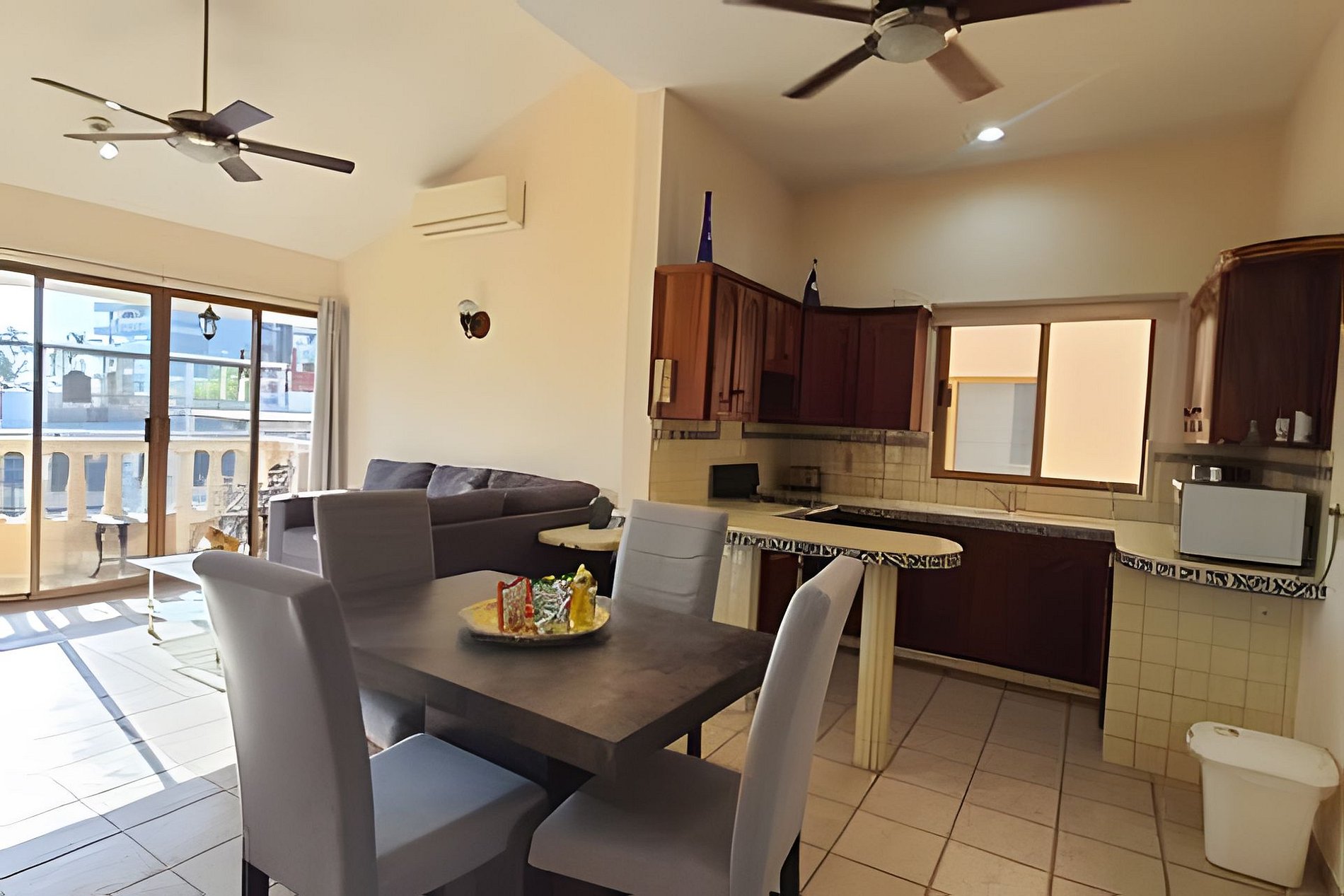 Esta encantadora casa con 2 departamentos de lujo y un penthouse, se encuentra a solo una cuadra y media de la playa. La propiedad cuenta con una pequeña alberca, cascada y palapa. Tiene dos dormitorios (1 cama king size y dos camas individuales), 2 baños, cocina, sala de estar y comedor, Smart tv e Internet inalámbrico. Aparcamiento para 1 coche.