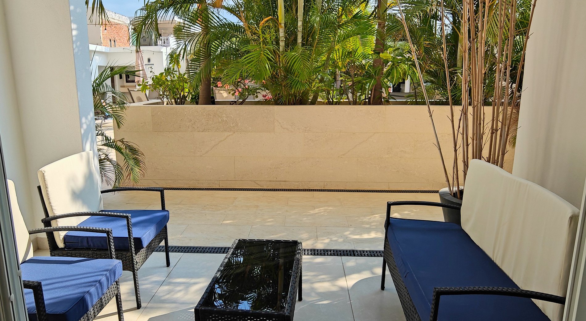 Se encuentra en la Zona Dorada de BucerÍas, a solo cuadra y media de la playa, dos cuadras y media del centro, una cuadra de la avenida principal, llena de restaurantes, cafés, galerías, farmacias, tiendas de abarrotes, y más…