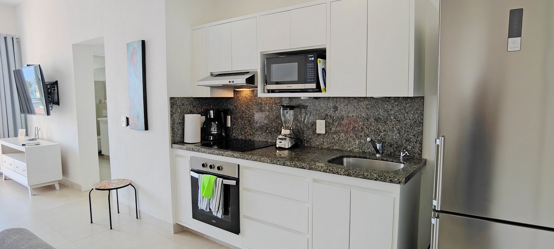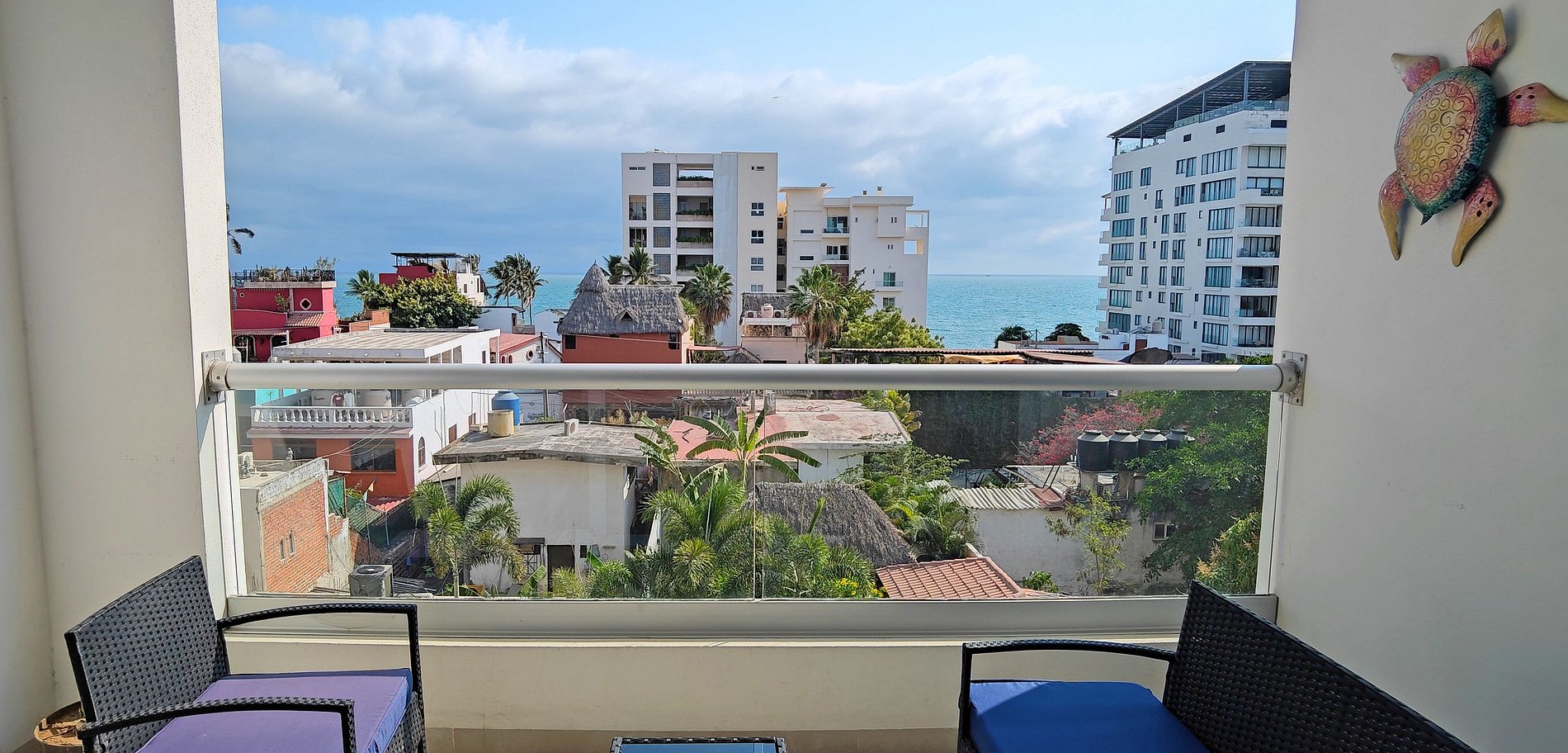 Se encuentra en la Zona Dorada de BucerÍas, a solo cuadra y media de la playa, dos cuadras y media del centro, una cuadra de la avenida principal, llena de restaurantes, cafés, galerías, farmacias, tiendas de abarrotes, y más…