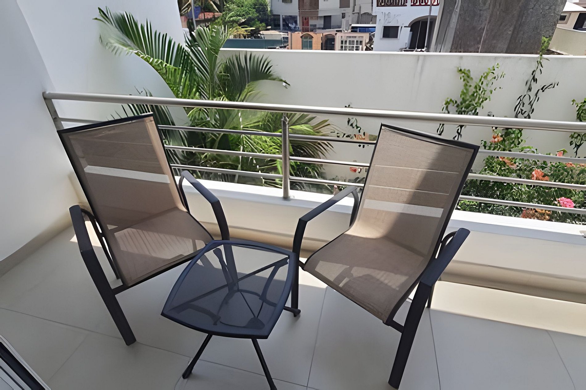La ubicación es excelente, a sólo 1.5 cuadras de la playa, 1 cuadra de la avenida principal, 3 cuadras del centro, cerca de restaurantes, cafeterias, bares, tienda de comestibles, hospital, bancos, etc.