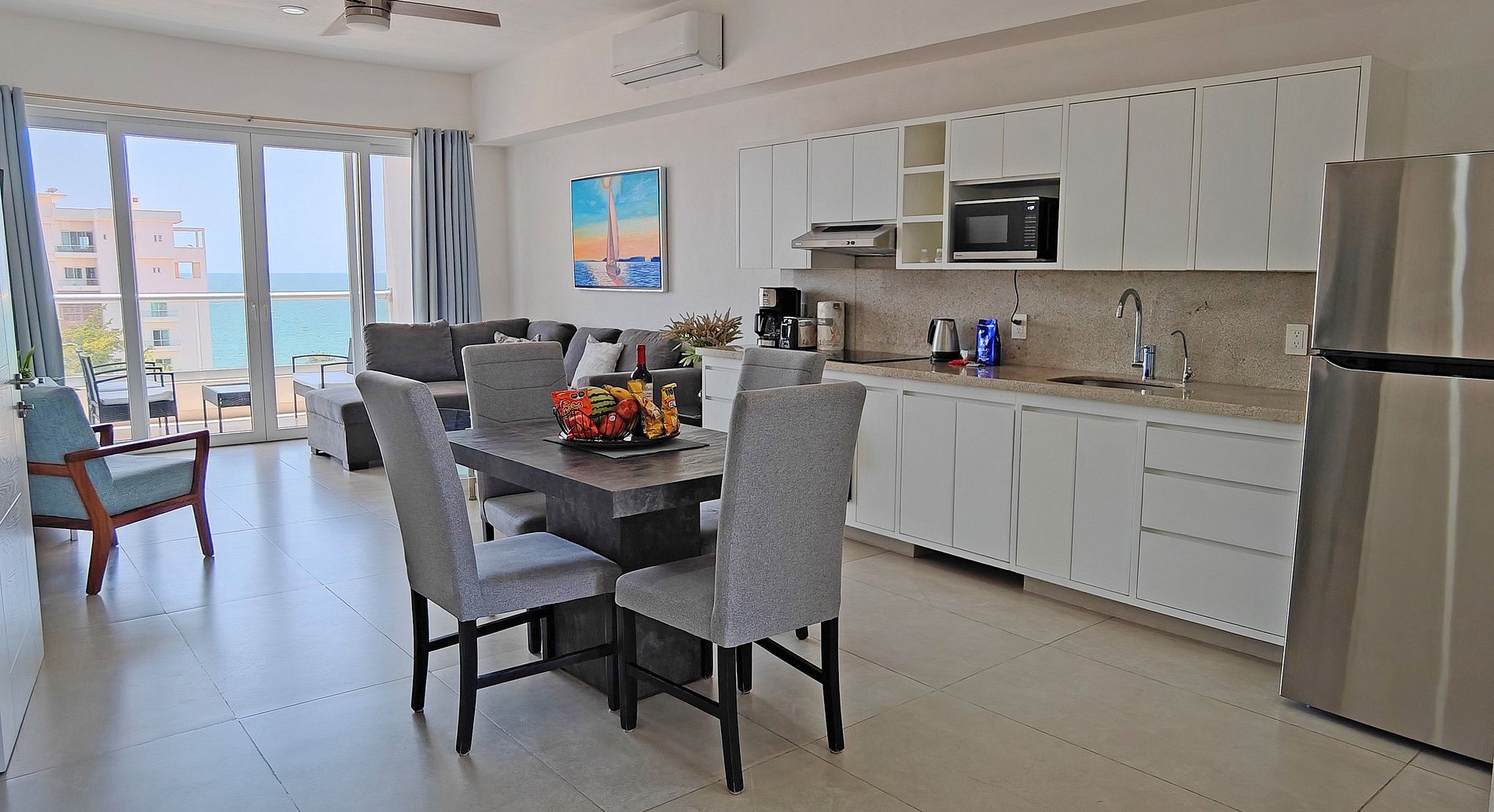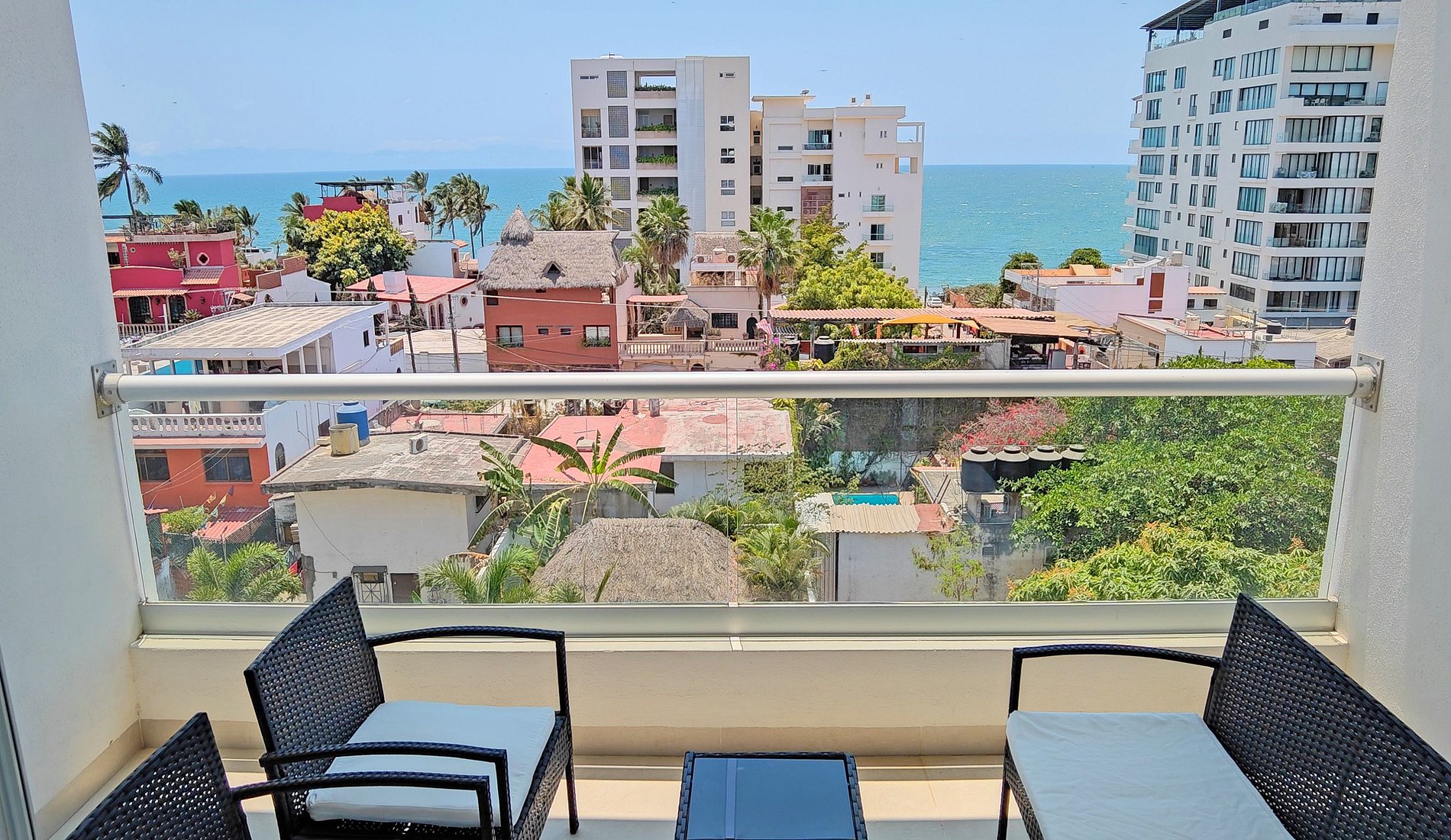 Se encuentra en la Zona Dorada de BucerÍas, a solo cuadra y media de la playa, dos cuadras y media del centro, una cuadra de la avenida principal, llena de restaurantes, cafés, galerías, farmacias, tiendas de abarrotes, y más…