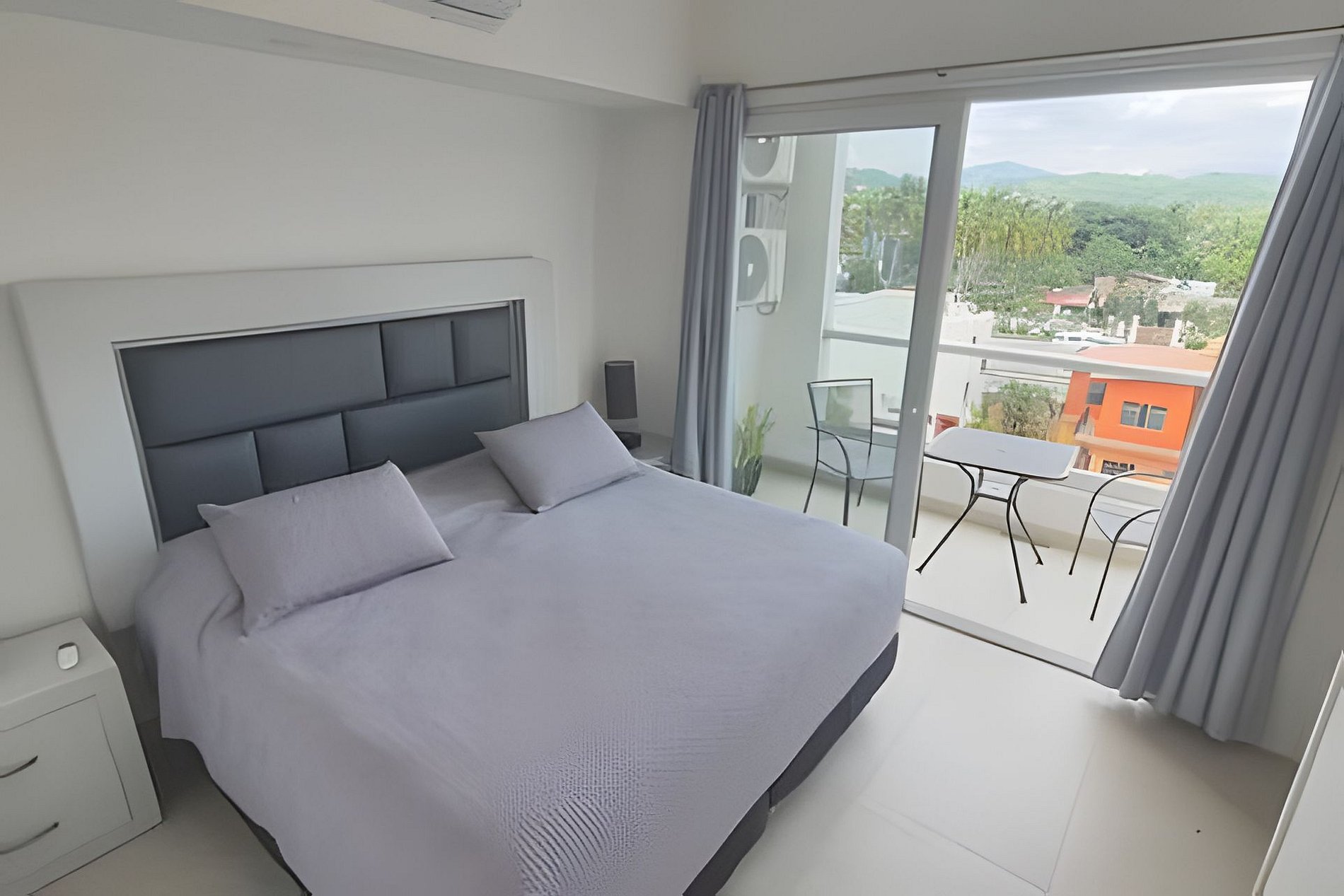 Acogedor departamento de una recámara con cama King Size, cocina completa, comedor, baño y medio, clóset, cuarto de lavado con lava-secadora, y un balcón con vista al mar.